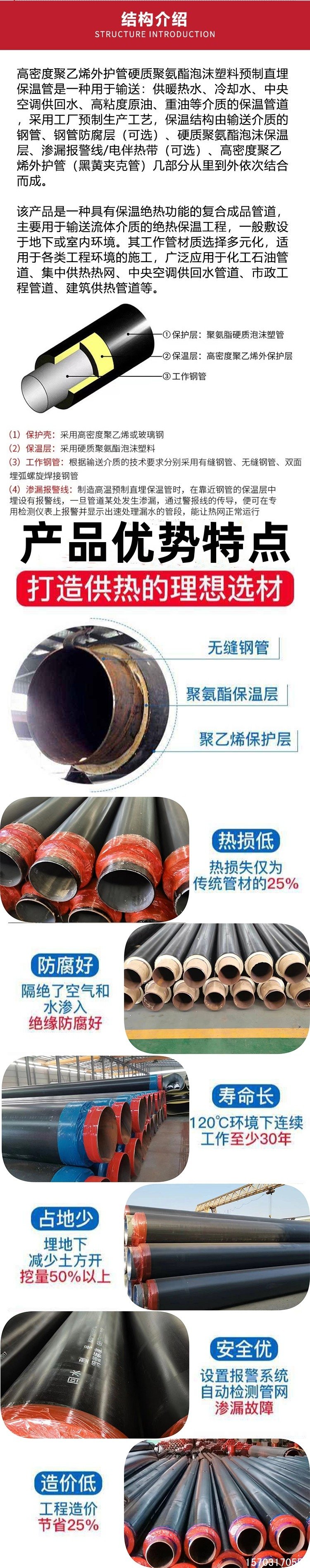 聚氨酯保溫鋼管以其優(yōu)良的性能,方便的施工及使用年限長(zhǎng)(30年-50年)而倍受人們歡迎,其結(jié)構(gòu)為:外保護(hù)層、保溫層、防滲漏層三部分,外保護(hù)層材料為聚乙烯夾克管或玻璃鋼或其它材料。敷設(shè)方式有直埋、架空、地溝三種方式。