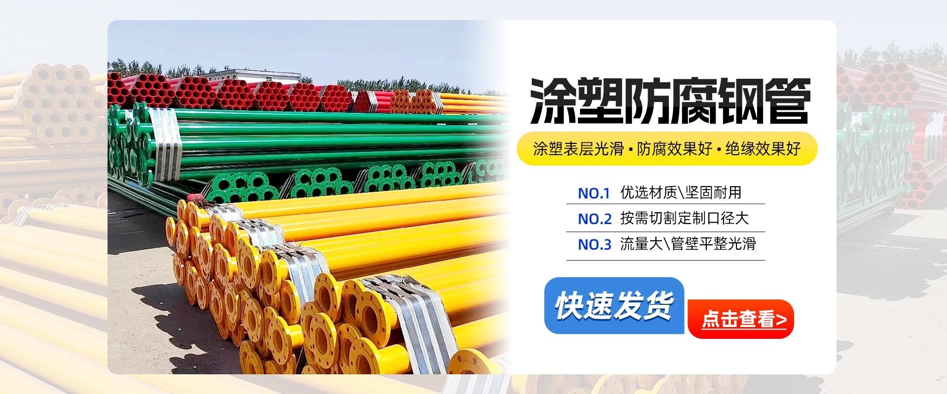 涂塑鋼管,又名涂塑管、鋼塑復合管、涂塑復合鋼管,是以鋼管為基體,通過噴、滾、浸、吸工藝在鋼管(底管)內表面熔接一層塑料防腐層或在內外表面熔接塑料防腐層的鋼塑復合鋼管。